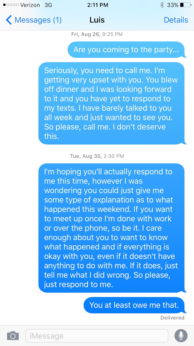 Legalább az udvariasság, hogy had higgye, hogy talán meghalt, vagy elromlott a telefonod. Ne menj hív a barátom, TUDOD, hogy van, amikor nyilvánvalóan figyelmen kívül hagyva őt.