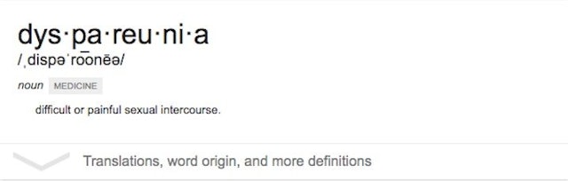 Tudom, hogy a “dyspareunia” ijesztően hangzik, de szó szerint csak egy másik szó a fájdalmas a szex. Nem hiszel nekem? Találtam a neten: