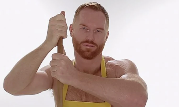 A hirdetés szerepelt a vörös hajú szex pot Seth Fornea semmit, csak egy sárga kötény.