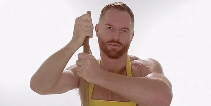 A hirdetés szerepelt a vörös hajú szex pot Seth Fornea semmit, csak egy sárga kötény.