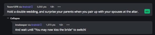 Ez a magyarázat azt javasolta, hogy van egy kettős esküvő egy csavar a végén: